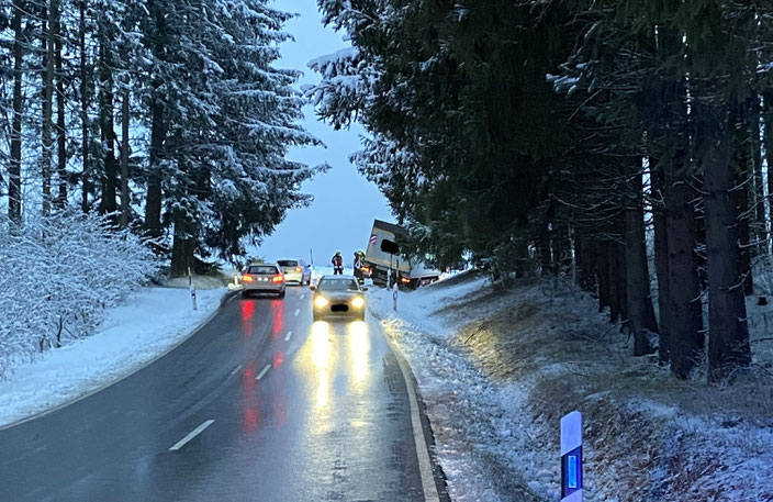 LKW in Graben, zur Verkehrssicherung, angefordert durch POL